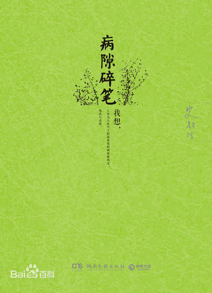 《病隙碎笔》是史铁生在生命最后时期,在承受巨大疼痛时仍然进行的,关于成长、生病、爱情、金钱、生存、道义、信仰、死亡等这些不止是关乎人生、更关乎生命的命题的思考,最让我震撼的是他对于“生病”和“生死”的坦白。