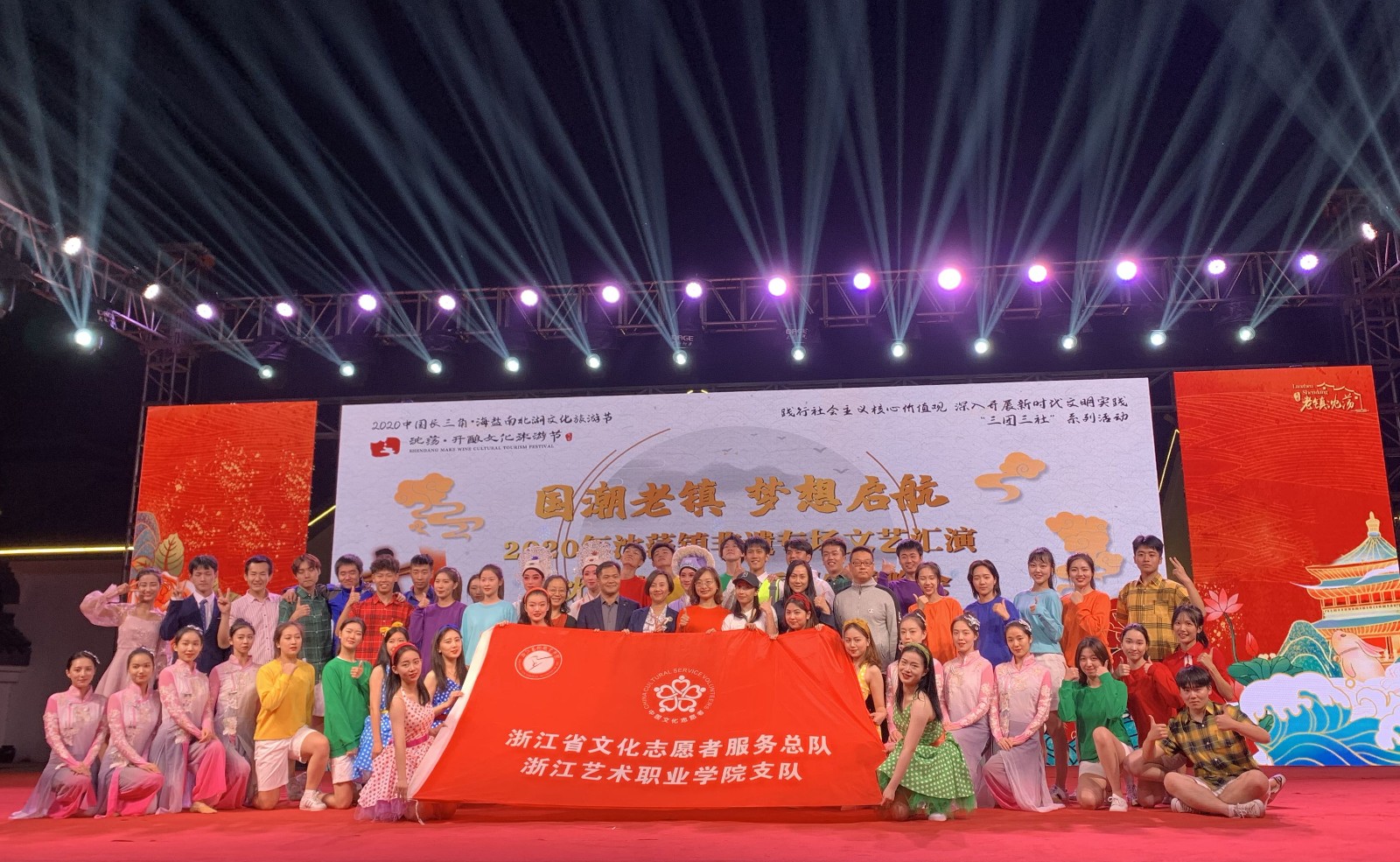“国潮老镇 梦想起航”,11月7日是2020年沈荡镇第三届开酿文化旅游节开酿日,同学们的文艺演出为沈荡老镇注入了青春活力。群舞《龙拳》、歌舞《迭·香》、群舞《美人吟》、群舞《迪斯科派对》,同学们优雅的舞姿、具有感染力的演唱让现场变得激情澎湃,观众叫好声不断。