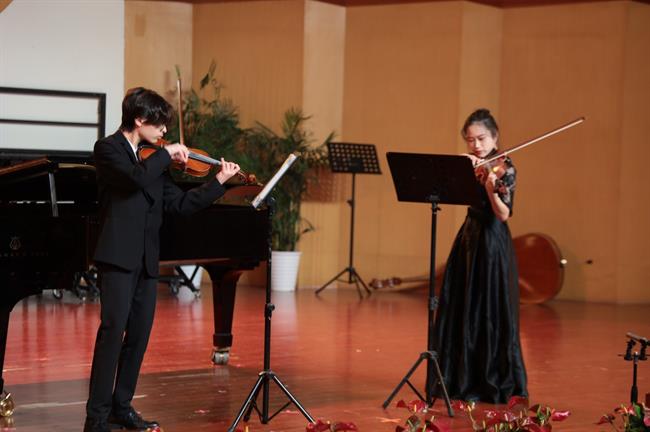 钢琴与小提琴合奏曲《组曲为两把小提琴与钢琴而作》演奏中,两位小提琴手与钢琴手的默契配合,使两种琴音融洽地交织在一起,让听众们深刻地感受到莫什科夫斯基风格的异国情调。