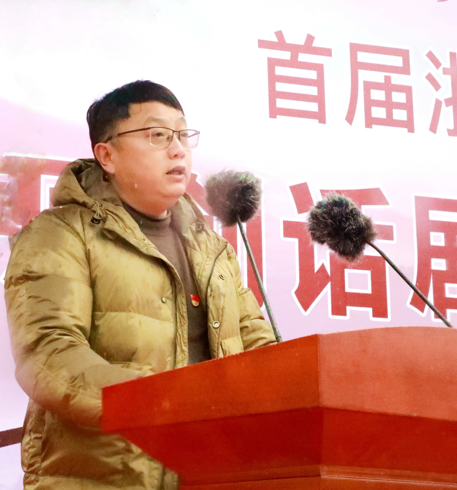 长兴县煤山镇人大副主席范培强作表态发言,他希望当好主人翁,服务好、协助好话剧《清溪谣》的创作,做好宣传,做到传播红色故事,升华红色基因。