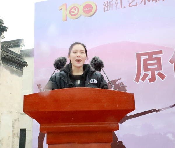 夏开堂作讲话,他代表学校,向参与话剧创作和演出的老师们、同学们致以问候,向中共长兴县委宣传部、长兴县文旅体局、长兴县文旅集团、长兴县煤山镇人民政府表示感谢。浙艺作为全国唯一一所入选“双高计划”的综合性高职艺术院校,话剧《清溪谣》的创作是戏曲表演专业建设群的一项成果。在全党上下正在开展党史学习教育之际,话剧《清溪谣》开排适逢其会,他要求浙艺师生们讲好中国共产党故事,创作和演绎展示党的伟大历程、伟大成就的优秀作品,为“文化浙江”“诗画浙江”建设提供有力人才支撑,在浙江“重要窗口”建设中发出浙艺声音、贡献浙艺智慧。