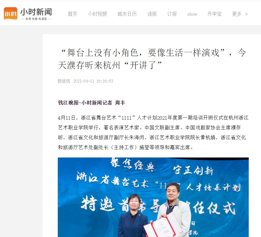 钱江晚报:“舞台上没有小角色,要像生活一样演戏”,今天濮存昕来杭州“开讲了”