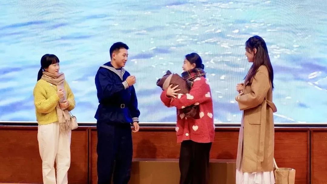 21定向的四位同学用精湛的表演演绎的《军嫂上岛》,讲述了在大年三十万家相聚团圆的时刻,三位军嫂满怀期待乘上与各自军人丈夫相见的船,却因台风原因无奈与自己的丈夫以隔空喊话的方式诉说自己的想念。质朴的喊活流露出的是她们质朴而又浓厚的真挚情感。“你在海上守海岛,我在家里守着你”,军嫂们用自己的行动诠释了“舍小家为大家”的决心,将自己无声的想念化作爱,用另一种方式为保卫国家贡献力量。