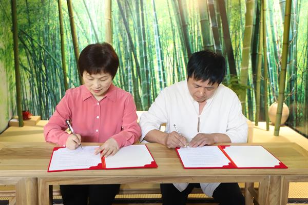 手工艺学院党总支书记、副院长金银琴与朱中华双方签订了产教融合实践教学基地协议。此次签约在专业建设、人才培养、社会实践等方面达成了合作意向,以实现产学研融合和供需对接,充分扩展就业渠道,进一步焕发传承新活力,共同打造“浙艺传承”金名片。