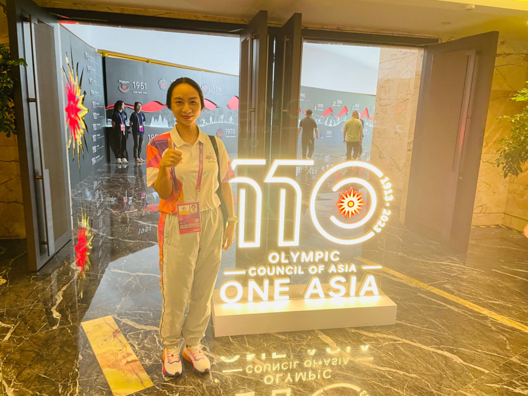 今年6月,我有幸被抽调至杭州亚组委参与工作,在工作中,我被分配到OCA/APC大家庭总部饭店运行团队,承担大家庭助理工作,主要负责协调、安排和陪同大家庭成员在杭期间的公务活动事项。我负责接待的主宾是国际奥委会委员、2008年北京奥运会女子个人重剑项目冠军布丽塔·海德曼。为了圆满完成此次接待任务,我前期做了充足的准备工作,了解了布丽塔的个人经历,预先为她“私人定制”她可能会感兴趣的个人行程;数次与她通过邮件和电话确认出行的相关细节,为她编写了一份具体的“出行指南”;我也认真、反复学习政策文件,记录笔记,以应对陪同过程中可能会出现的各种突发情况。但是在接待任务正式开始的第一天,就迎来了一个挑战。开幕式当天,布丽塔乘坐的航班意外晚点一个多小时,她很有可能赶不上开幕式的远端安检。在了解情况后,我迅速联系了杭州的交通保障团队、安保团队的相关负责人和机场端的礼宾引导人员,制定了Plan B和Plan C。经过各方协调和努力,宾客按时抵达了开幕式现场。通过这次经历,我不仅为亚运会的成功举办而感到骄傲,也因为自己能够参与其中而感到开心。