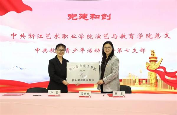 随后,我院和中共杭州市青少年活动中心第七支部就党建和创、学生校外实训就业基地的设立达成共识,签订合作协议,并举行颁牌仪式。