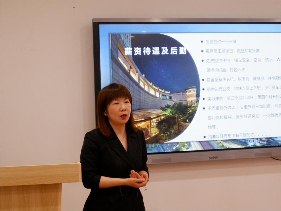 开元旅业集团是一家持续追求价值领先的旅游产业投资与运营集团,以酒店业为主导产业,同时拥有房产、乐园、商业、工业、文旅等产业。截至目前,开元拥有总资产逾190亿元,在营下属企业近150家。集团入列中国旅游集团20强、是中国领先的酒店集团之一。集团旗下两家酒店的人力资源总监分别对开元名都大酒店和绍兴大禹开元酒店做了详尽介绍,豪华商务型酒店提倡走在时代前沿,酒店经营融入文化产业,让住客从胃口到视觉都有不一样感受;文化体验型酒店则提倡主题文化营销,将当地文旅特色发挥到极致。作为我院合作单位,企业首次推出酒店文化体验官岗位,面向演教学院学生进行招聘,并表示期待我院学生来到企业工作实习,不断加强企业合作,推动文旅融合在该系列项目发展。