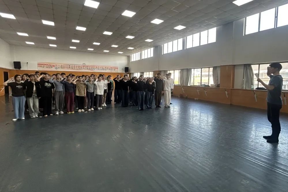 “我志愿参加杭州亚运志愿者工作,舞出青春,任务荣光……”响亮的誓言回荡在舞蹈学院教学楼里。舞蹈学院参加第19届亚运会全体志愿者们一起举起右拳,庄严宣誓。