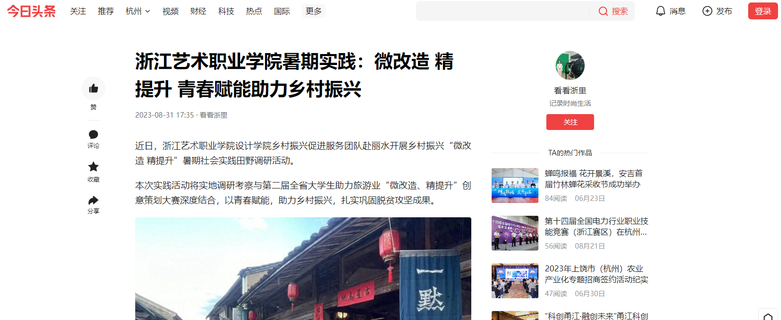 让青春与乡村双向奔赴,设计团队成员们在本次实践活动中收获颇丰,深刻认识到乡村振兴战略对推动我国乡村发展的重要性。返校后,设计学子们学以致用,结合所学专业,发挥学科优势,以更加饱满的热情投入到学习、工作和发展中去,在“浙”里贡献青春力量。