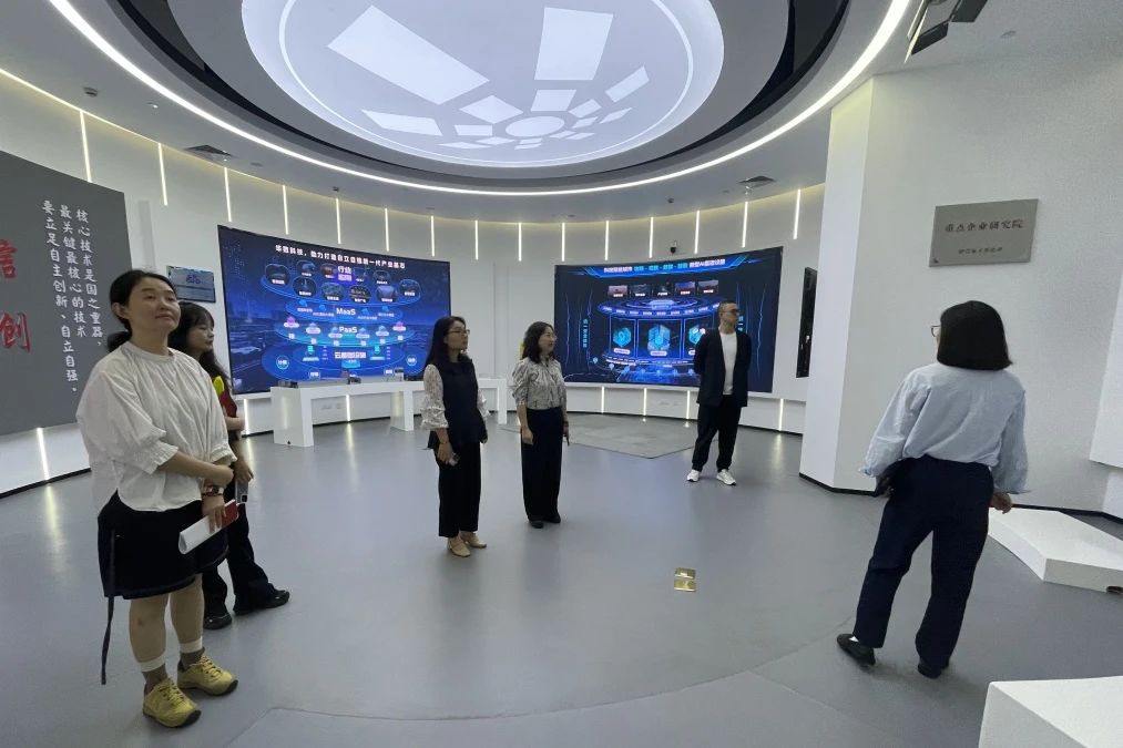 学院一行人在浙江华数文化产业发展有限公司企业负责人王桢臻的带领下参观了华数集团5G智能展厅,详细了解企业发展历程。