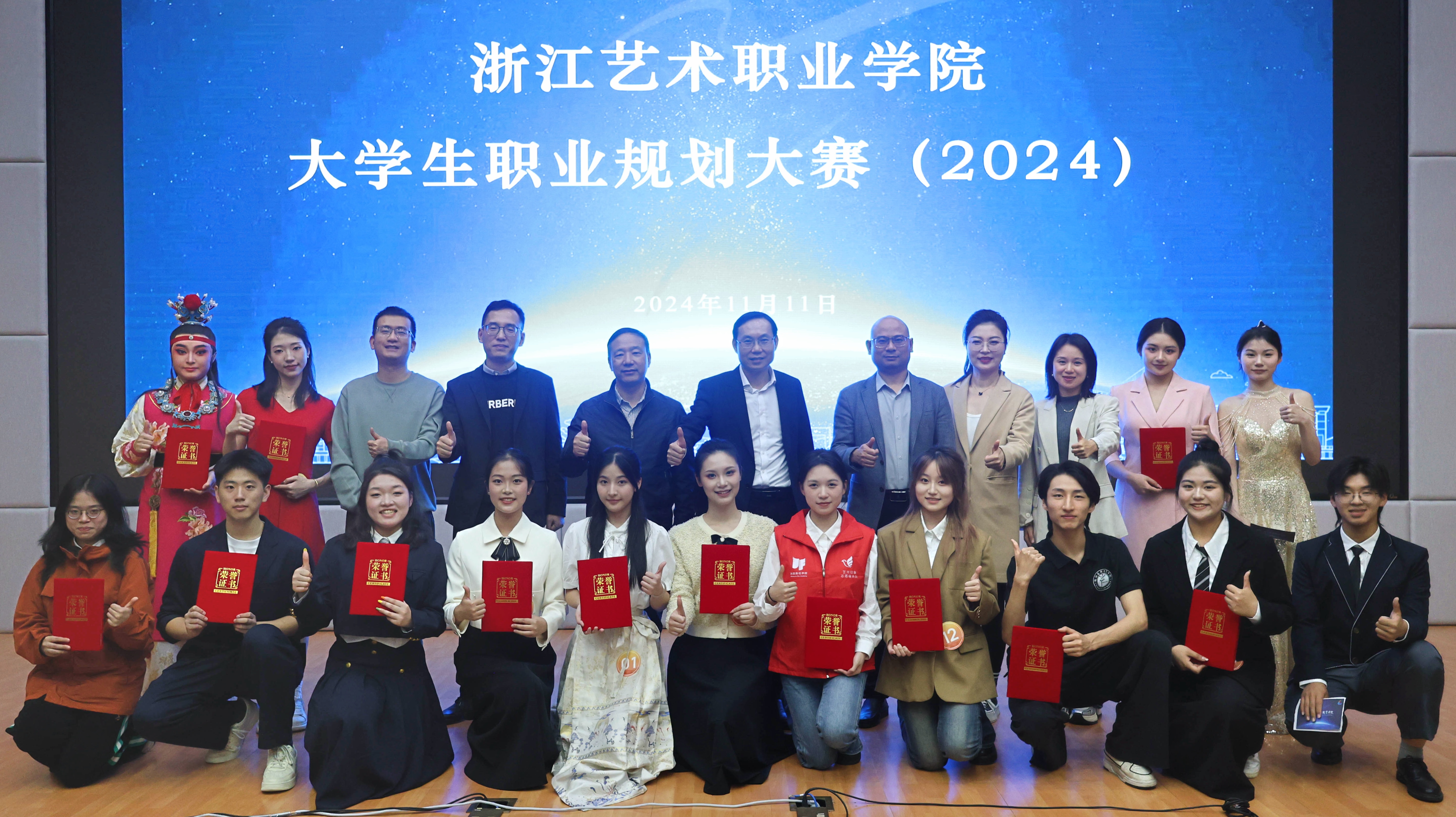 本次大赛分为成长赛道和就业赛道,经过前期学院初筛、校赛复赛选拔,13位选手从中脱颖而出,顺利晋级决赛。在决赛现场,选手们紧密围绕各自的职业目标,不仅展示了自己的能力优势、行动成果,还阐述了对目标岗位的充分认知及长远规划,全方位体现了浙艺学子针对职业道路的深入探索和实践能力。面对来自多所本科高校和知名企业评委的提问,选手们沉着冷静,应答如流,赢得了在场观众的阵阵掌声。