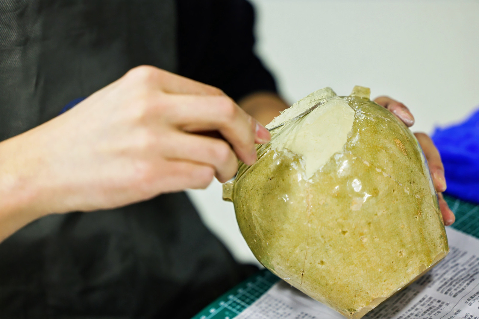两天的赛事有序进行,比赛现场,选手们专注投入,展现出深厚的专业功底和精湛技艺。如在陶瓷文物修复比赛中,包括了理论考核和实操比赛两个部分。理论考核涉及《中华人民共和国文物保护法》《中华人民共和国文物保护法实施条例》、可移动文物病害评估技术规程、文物保护常识及病害识别能力、处理办法等。实操比赛不但需要选手完成器物修复,更要做好修复记录,完成修复方案与修复档案,主要考核的内容是选手们对器物病害认识,以及器物修复主要工序等。