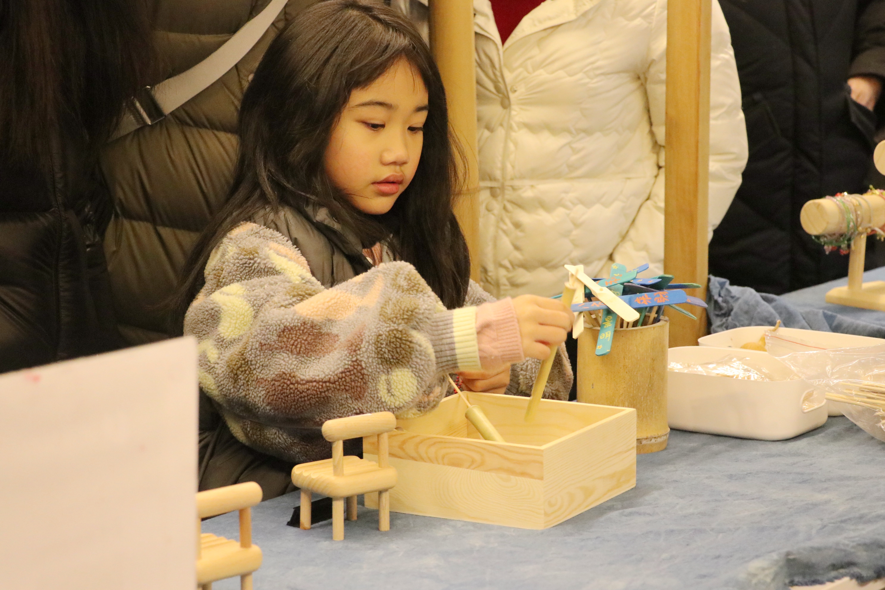 非遗添年味,文化进万家。非遗创意产业学院首批创业导师徐夏怡参与本次活动,对学生们的手艺给予肯定。“在这次活动中我不仅见识到了民风民俗,提升了专业能力,也感受到了大家的团队协作精神,为我的青春时光留下了浓墨重彩的一笔。”民族传统技艺专业学生陈果儿说。