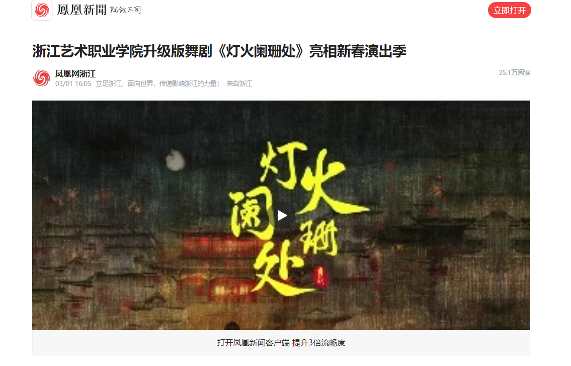 《灯火阑珊处》总编导 李毅源:《灯火阑珊处》继去年在浙江实验艺术剧场上演后,新版改编工作于2023年4月正式开始,在浙江文化艺术发展基金的大力支持下,舞剧从三个方面进行了大幅调整和升级。通过编剧和总编导的进一步修改和完善,整部舞剧的结构更为紧凑、合理,剧情和人物之间的关系更加紧密,同时在主线的叙述、情绪的转折和立意的铺垫上更符合当时的人物心理,更容易与观众产生共鸣。