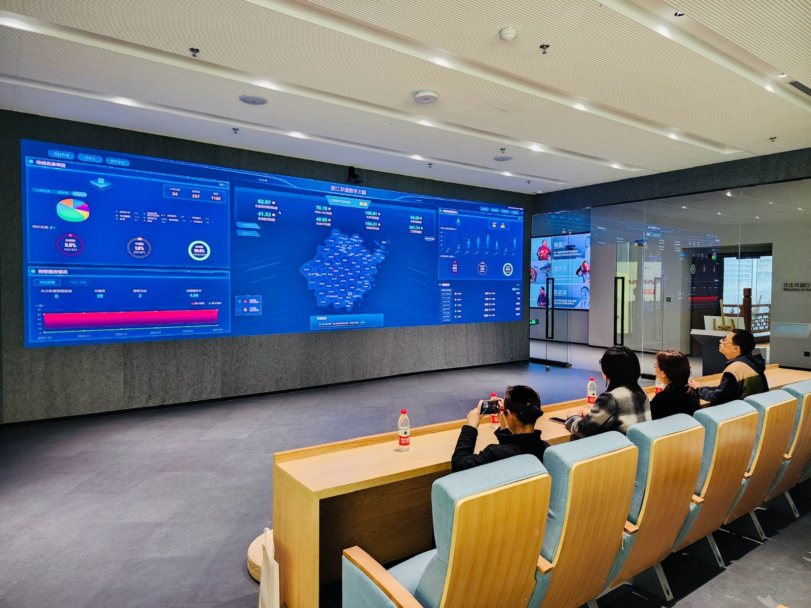 省非遗保护中心(馆)综合办公室副主任郑为贵陪同调研,详细介绍了场馆总体情况、楼层分布和浙江非遗数字大脑。