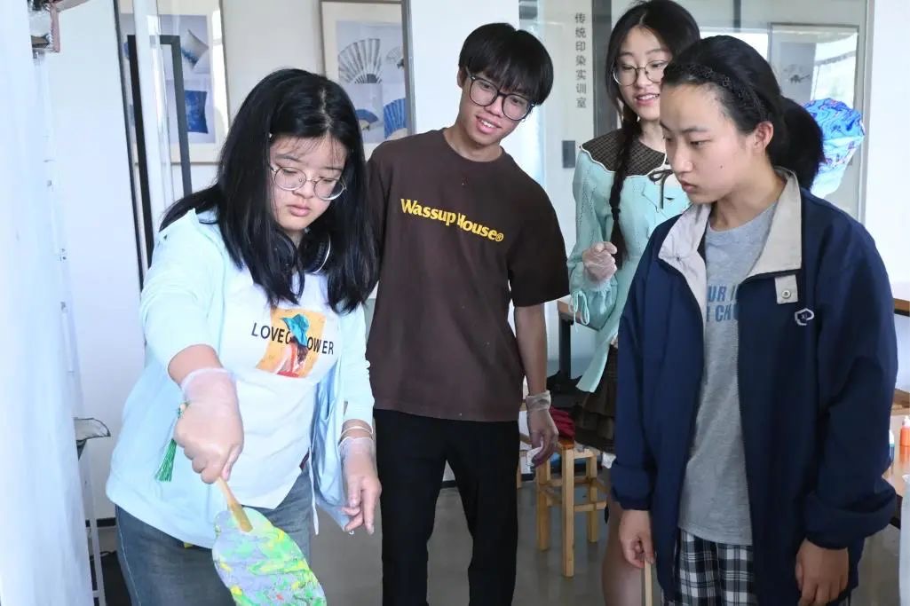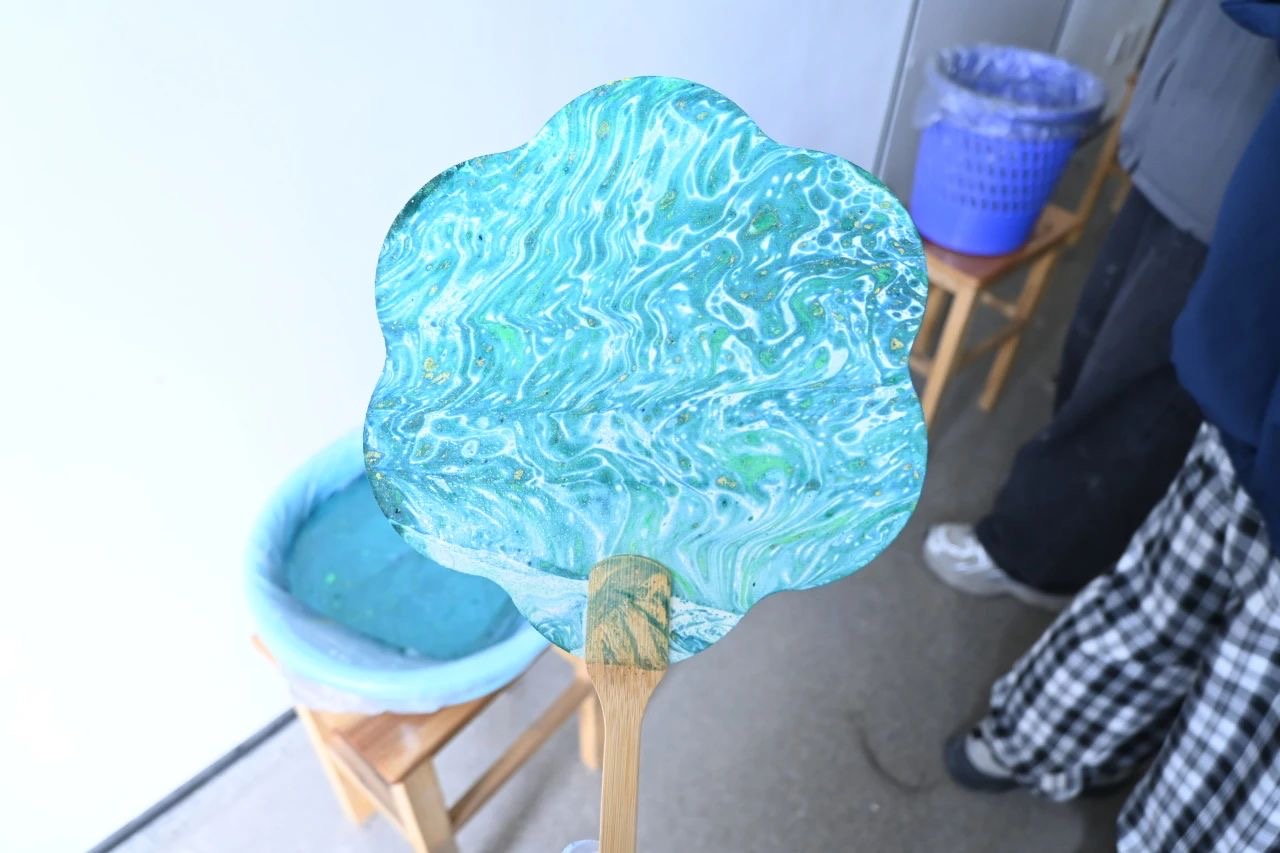 或绚烂多彩,或素雅清新,每一把漆扇都散发着东方美学的独特韵味。同学们纷纷和自己的作品合影留念,脸上洋溢着成功的喜悦和自豪。