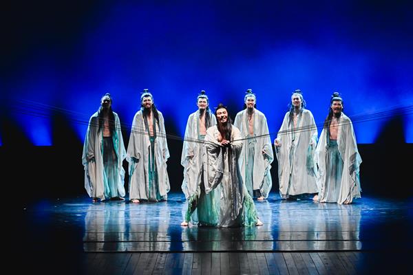 群舞《西施别越》取材于浙江诸暨西施的故事,以独特的视角,戏剧性的叙事,塑造了一位深明大义的女性形象,同时也彰显坚贞不屈的古越风骨。