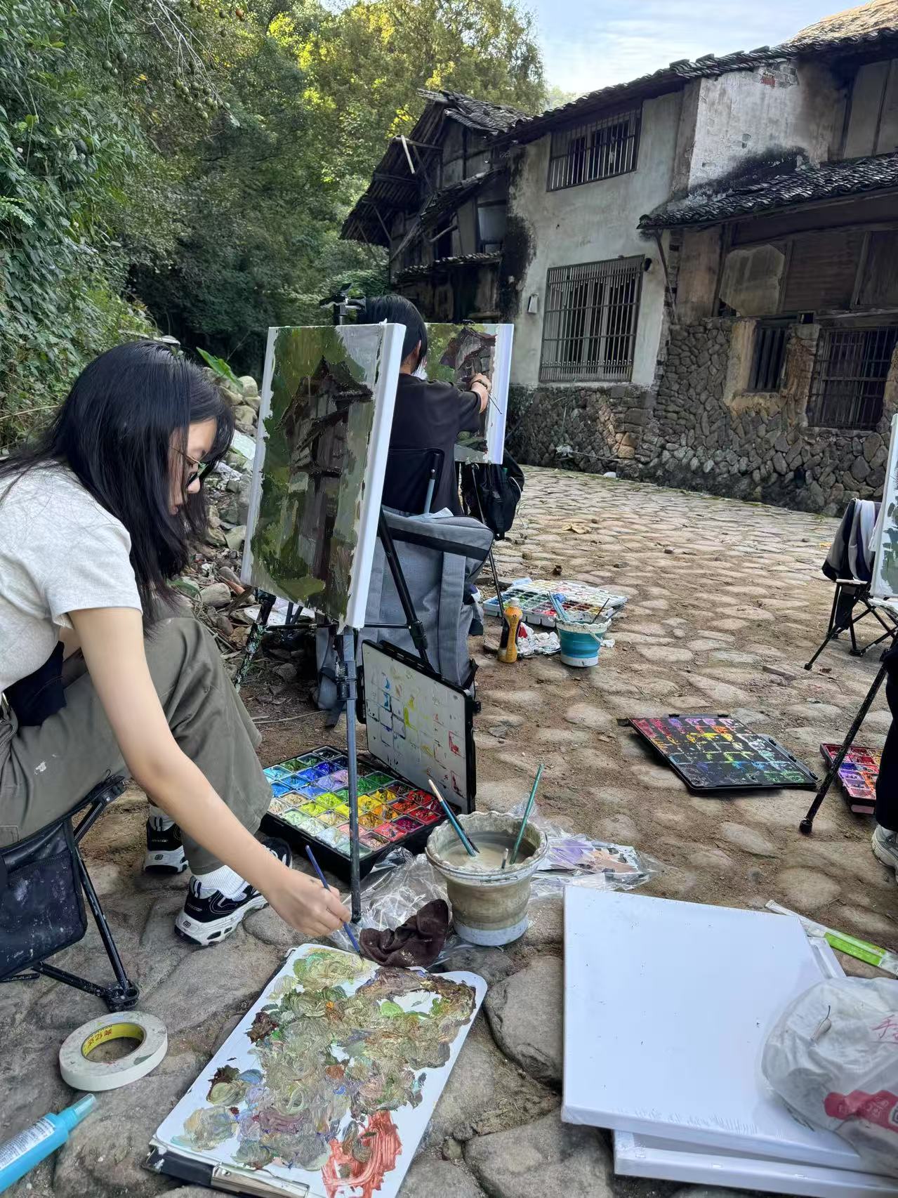 一年级长期石膏写生制陶现场写生