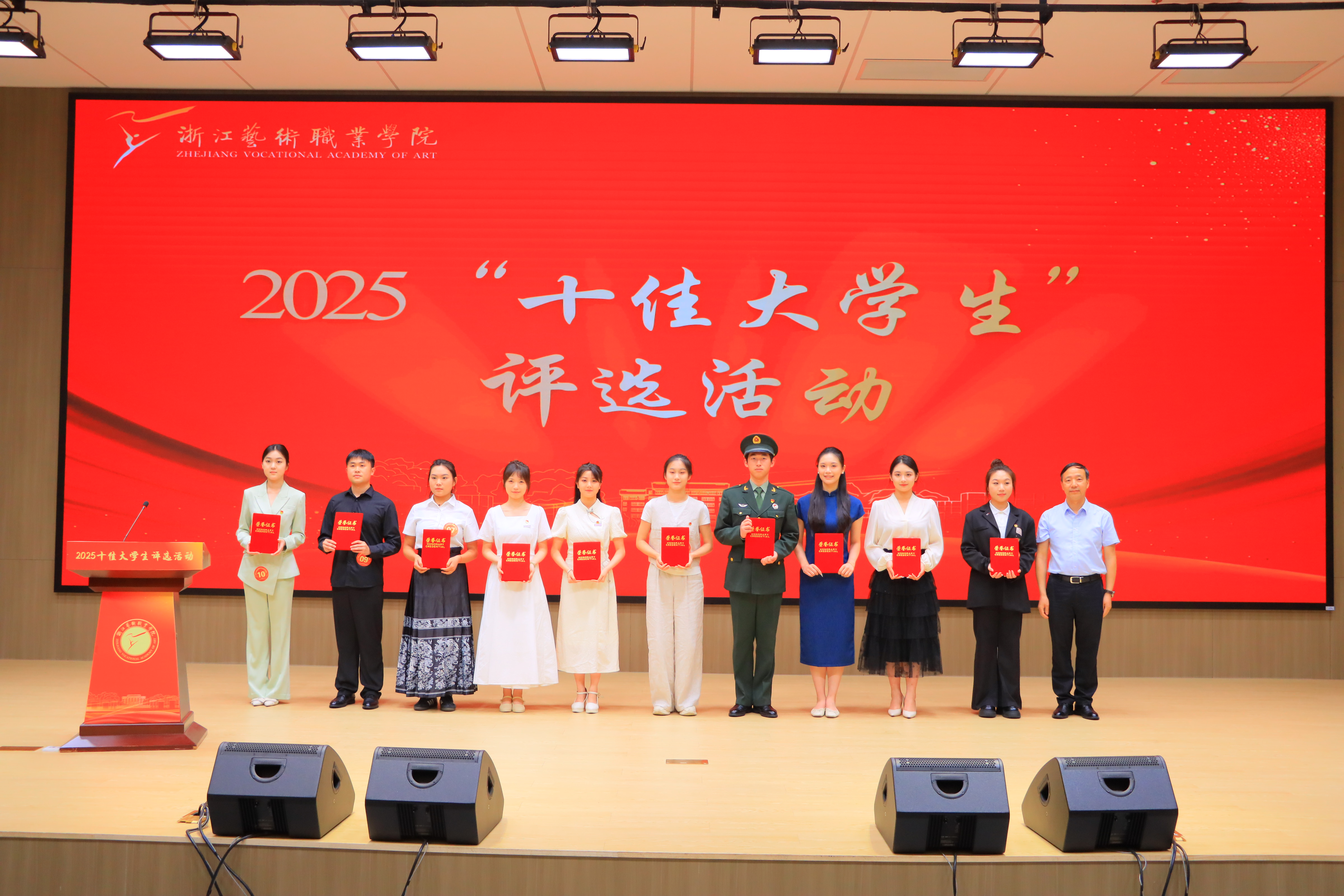 为全面彰显我校“求真 尚美 精艺 修为”的浙艺学子精神风貌,充分发挥榜样示范引领作用,激励全校学生志存高远、勤学不辍,在创新创业中勇立潮头,于奉献社会中践行使命担当,我校2025年“十佳大学生”评选活动于6月11日在新大楼报告厅举行。