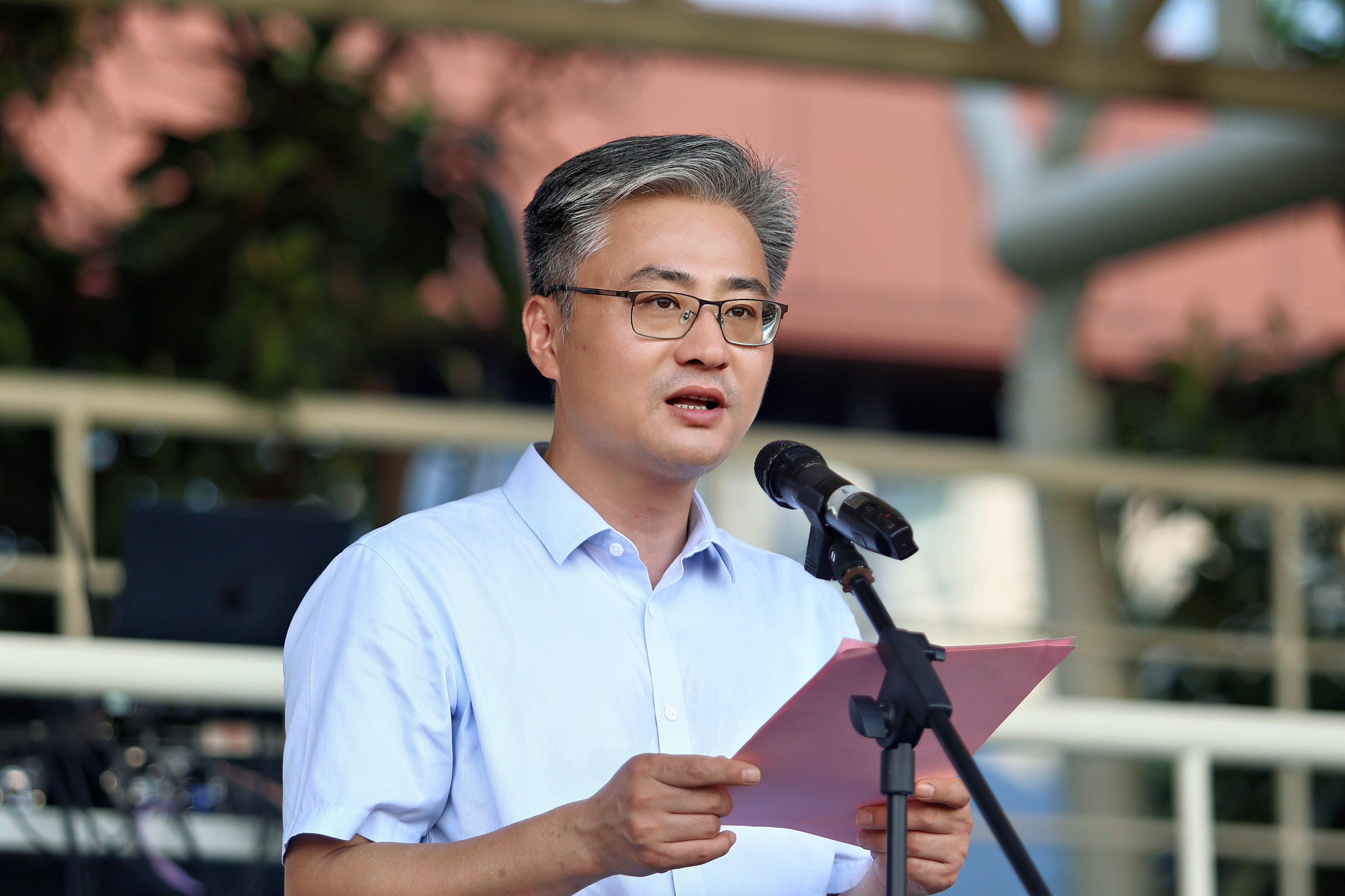 校党委书记薛亮充分肯定了此次军训的丰硕成果。他在讲话中指出,军训期间,同学们克服天气炎热等困难,展现出不怕苦、不怕累的顽强意志。学校即将迎来建校70周年校庆,希望同学们将军训中培养的纪律意识、集体精神和目标志向延续到今后的学习生活中,为学校的建设与发展贡献更多青春力量。